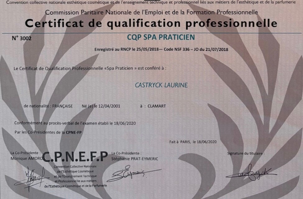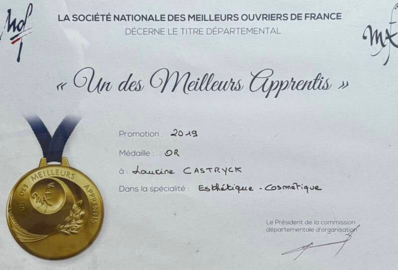 Bonjour, je suis Laurine, esthéticienne diplômée et doublement récompensée au concours du Meilleur Apprenti de France.